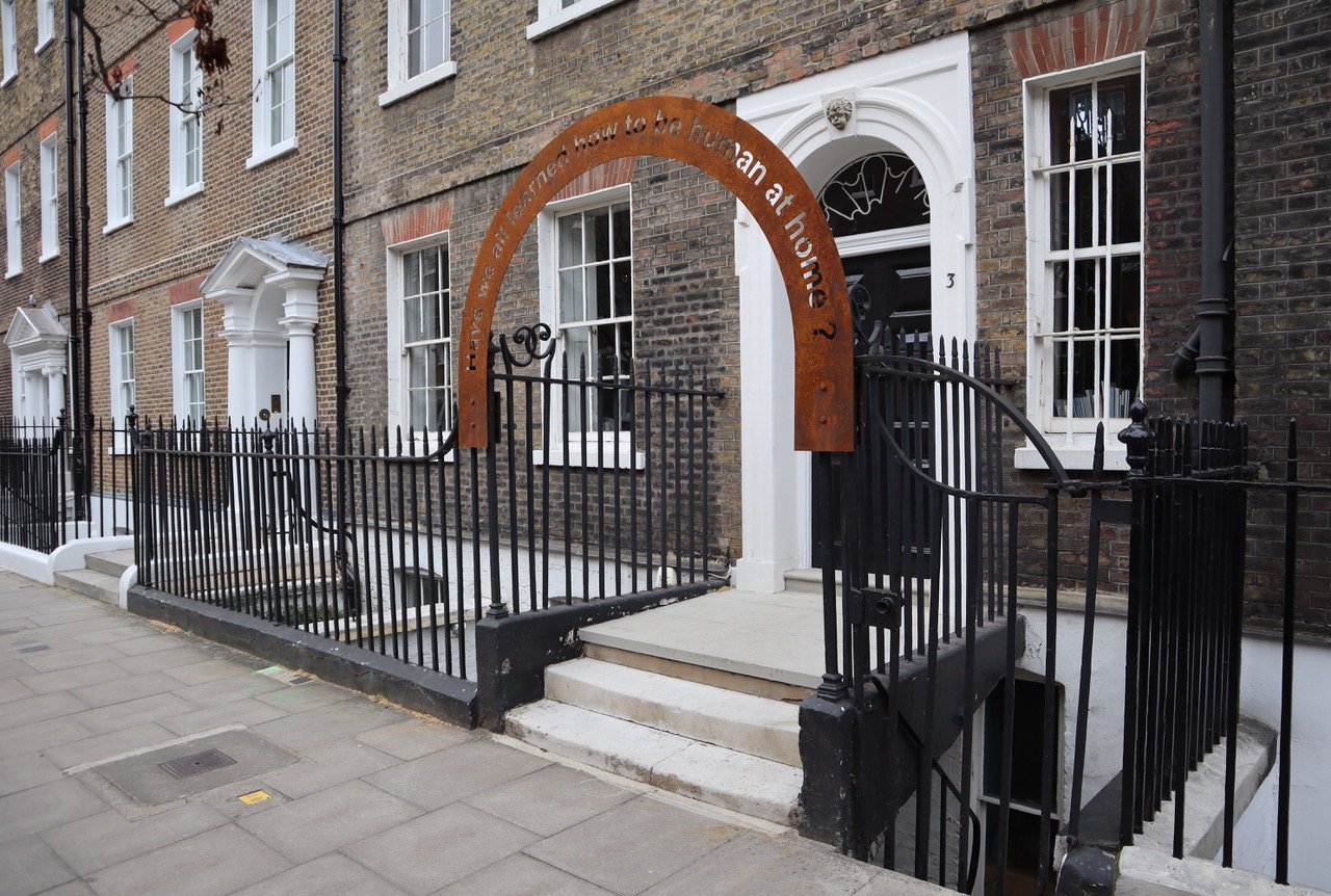 Domo Baal is delighted to present Kristaps Ancāns' 'Have we all learned how to be human at home?' a sculptural installation in laser cut steel situated over the threshold of the gallery building. It may therefore be viewed by anyone passing by at any time. 'Have we all learned how to be human at home?' will remain installed during and throughout this transitional and liminal time as we emerge (hopefully) from the pandemic, how did you spend your time at home?