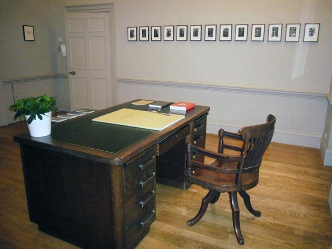 (image: Sharon Kivland, installation view of 'Freud and The Gift of Flowers' series of framed sliverprints, 2009)