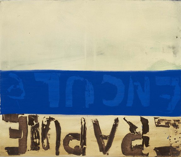 (image: Walter Swennen 'Crapule' 60×70cm/23.5×27.5in, oil on cotton 2010, photography by Andy Keate)